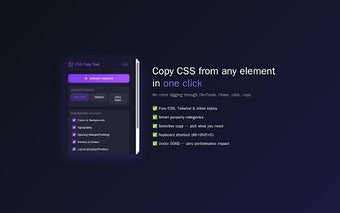 CSS Copy Tool, web üzerindeki herhangi bir elementin CSS stilini anında kopyalamayı sağlayan hafif bir Chrome eklentisidir. Kullanıcılar, DevTools ile manuel olarak elementleri incelemek yerine, sadece fare ile üzerine gelerek stil bilgilerini hızlıca elde edebilirler. Eklenti, CSS'i saf haliyle, Tailwind sınıfları ya da satır içi stiller olarak kopyalama seçenekleri sunar. Ayrıca, renkler, tipografi, boşluk, kenarlar, düzen ve efektler gibi akıllı özellik kategorileri ile kullanıcıların işini kolaylaştırır. Kopyalama işlemi, bir tıklama ile gerçekleştirilebilir ve kullanıcıların sadece ihtiyaç duyduğu özellikleri seçmesine olanak tanır.